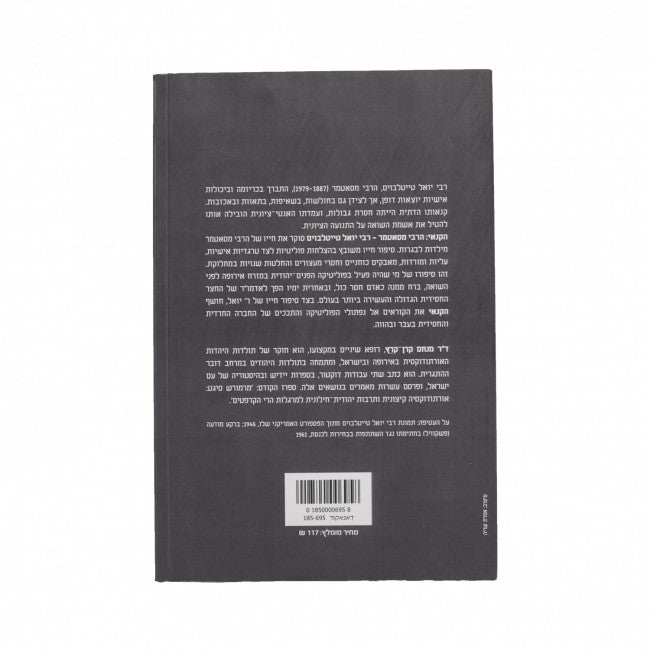רבי יואל טייטלבוים, הרבי מסאטמר (1979-1887), התברך בכריזמה וביכולות אישיות יוצאות דופן, אך לצידן גם בחולשות, בשאיפות, בתאוות ובאכזבות. קנאותו הדתית הייתה חסרת גבולות, ועמדתו האנטי-ציונית הובילה אותו להטיל את אשמת השואה על התנועה הציונית. הקנאי: הרבי מסאטמר - רבי יואל טייטלבוים סוקר את חייו של הרבי מסאטמר מילדות לבגרות. סיפור חייו משובץ בהצלחות פוליטיות לצד טרגדיות אישיות, עליות ומורדות, מאבקים כוחניים וחסרי מעצורים והחלטות שנויות במחלוקת. זהו סיפורו של מי שהיה פעיל בפוליטיקה הפנים יהודית במזרח אירופה לפני השואה, ברח ממנה כאדם חסר כול, ובאחרית ימיו הפך לאדמו"ר של החצר החסידית הגדולה והעשירה ביותר בעולם. בצד סיפור חייו של ר' יואל, חושף הקנאי את הקוראים אל נפתולי הפוליטיקה והתככים של החברה החרדית והחסידית בעבר ובהווה. ד"ר מנחם קרן קרץ, רופא שיניים במקצועו, הוא חוקר של תולדות היהדות האורתודוקסית באירופה ובישראל, ומתמחה בתולדות היהודים במרחב דובר ההונגרית. הוא כתב שתי עבודות דוקטור, בספרות יידיש ובהיסטוריה של עם ישראל, ופרסם עשרות מאמרים בנושאים אלה. ספרו הקודם: 'מרמורש סיגט: אורתודוקסיה קיצונית ותרבות יהודית חילונית למרגלות הרי הקרפטים'. על העטיפה: תמונת רבי יואל טייטלבוים מתוך הפספורט האמריקני שלו, 1946; ברקע מודעה (פשקוויל) בחתימתו נגד השתתפות בבחירות לכנסת, 1961