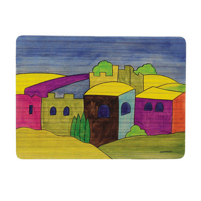 This decorative wooden placemat by Yair Emanuel is the perfect place to eat your breakfast, lunch or supper on.The placemat is decorated with a beautiful illustration of the holy city of Jerusalem. This placemat is hand-painted with bright and harmonious colors and coated with three layers of lacquer to make it completely functional and waterproof.It is the perfect gift for your child on his or her birthday.Size:15.8in x 11.7in