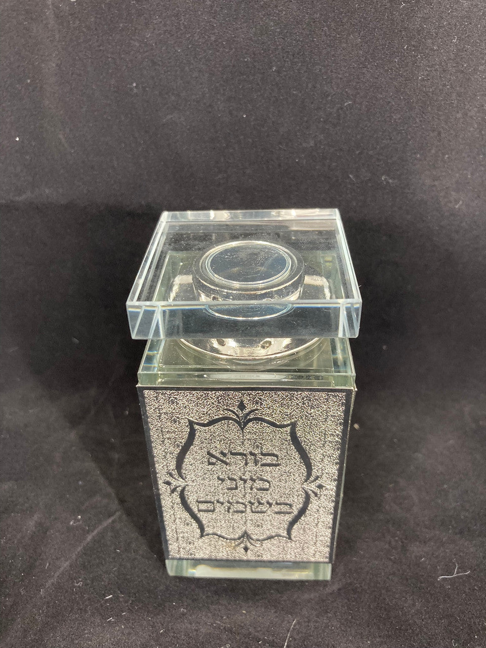 Crystal Besamim Holder-Silver Plate Design w/ Brachah 4" (HV-12123)