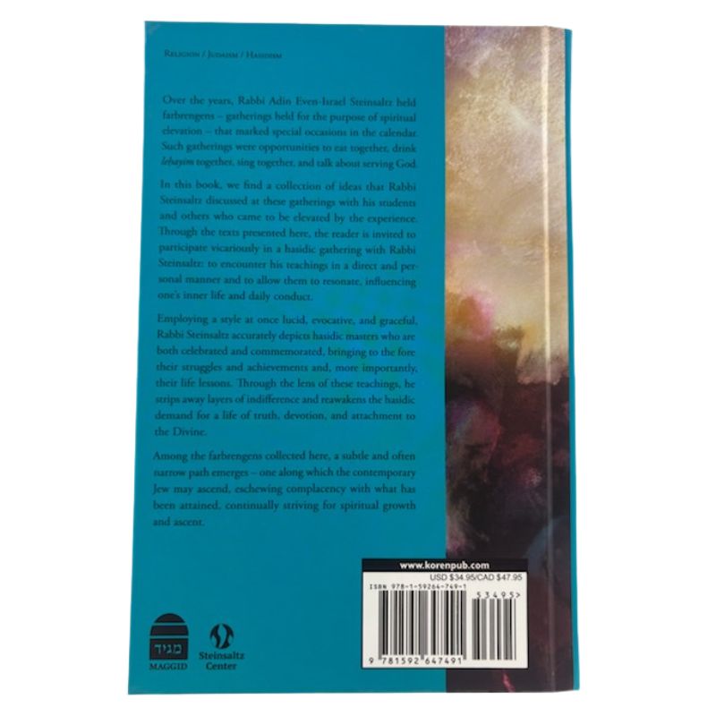 Through the texts presented here, the reader is invited to participate vicariously in a hasidic gathering with Rabbi Steinsaltz: to encounter his teachings in a direct and personal manner and to allow them to resonate, influencing one's inner life and daily conduct.