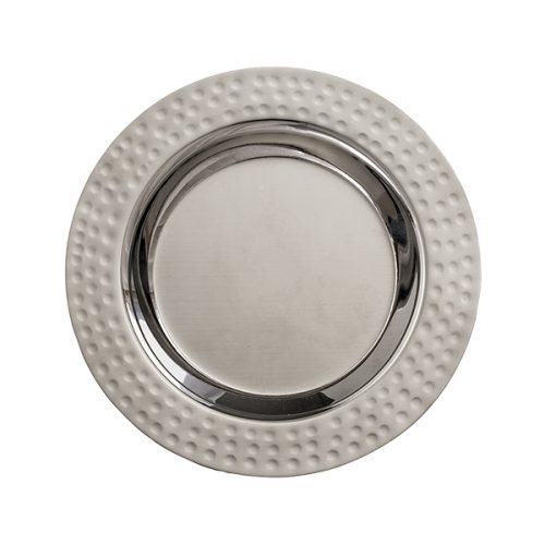 Yair Emanuel textured Hammered silver colored kiddush cup.The cup comes with a matching bottom plate. Using this kiddush cup will enhance the pleasurable experience of blessing the wine on Shabbat and holidays. It is a wonderful gift for a Bar or Bat-Mitzvah, wedding, and other special occasions.
