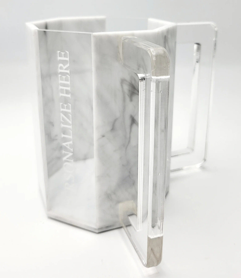 Let the bounty pour with this sleek lucite and marble-print washing cup.