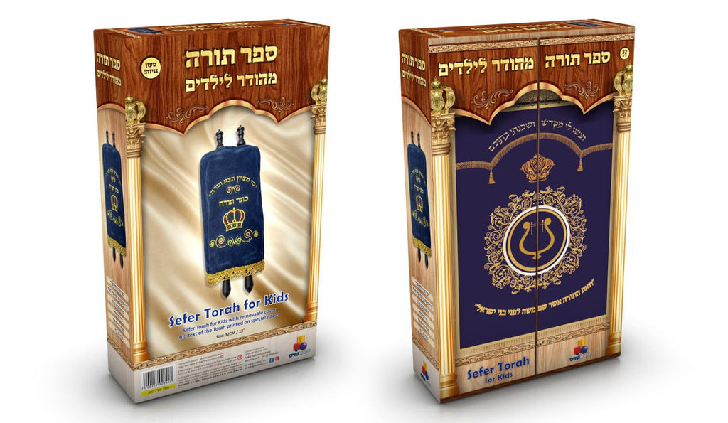 The Torah scroll comes in a package designed and opened as an ark, with the blessings of the Torah appearing inside. The Torah scroll is wrapped in a beautiful velvet-like coat with high-quality hardwood Atzai Chaim, with high-quality parchment-like paper printed in plain text.