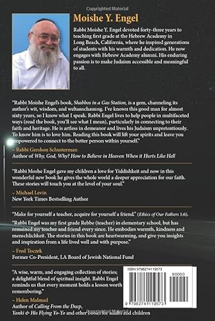 “Rabbi Moishe Engel’s book, Shabbos in a Gas Station, is a gem, channeling its author’s wit, wisdom, and weltanschauung. I’ve known this good man for almost sixty years, so I know what I speak. Rabbi Engel lives to help people in multifaceted ways (read the book, you’ll see what I mean), particularly in connecting to their faith and heritage. He is artless in demeanor and lives his Judaism unpretentiously. To know him is to love him. Reading this book will lift your spirits and leave you empowered to connect to the better person within yourself.”