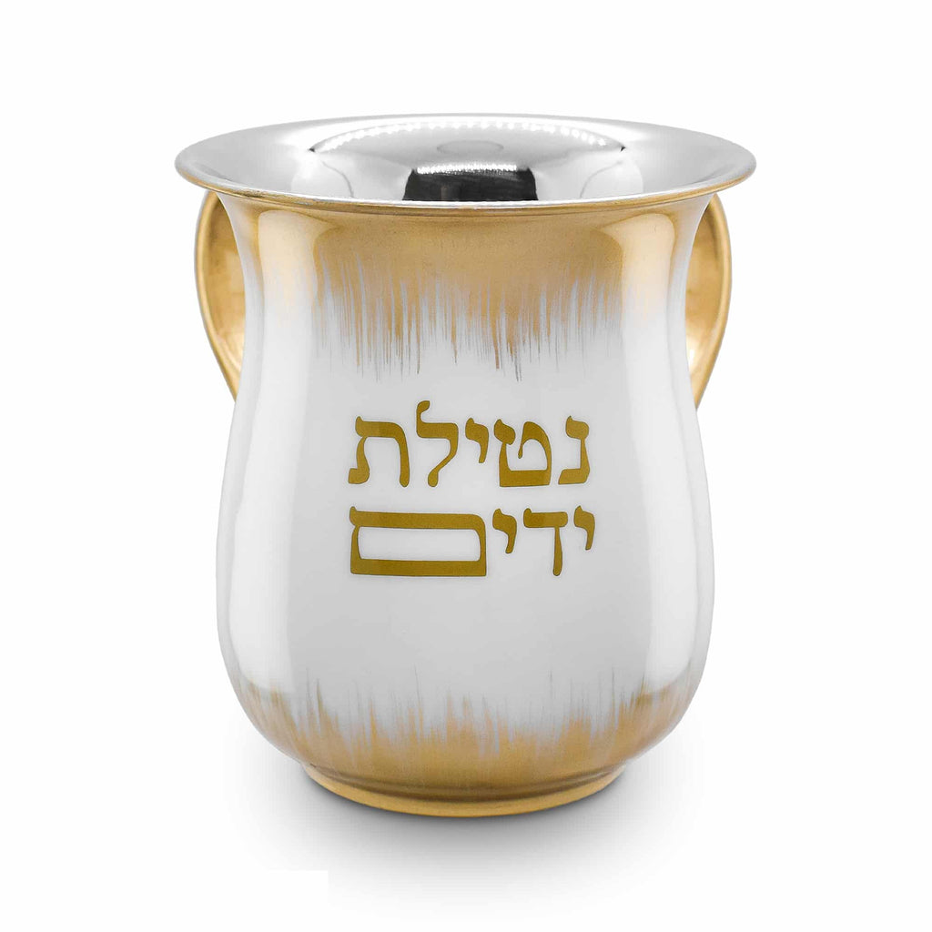Stainless Steel Washcup-White With Gold Handles and Brush Design (WC-X5743W)