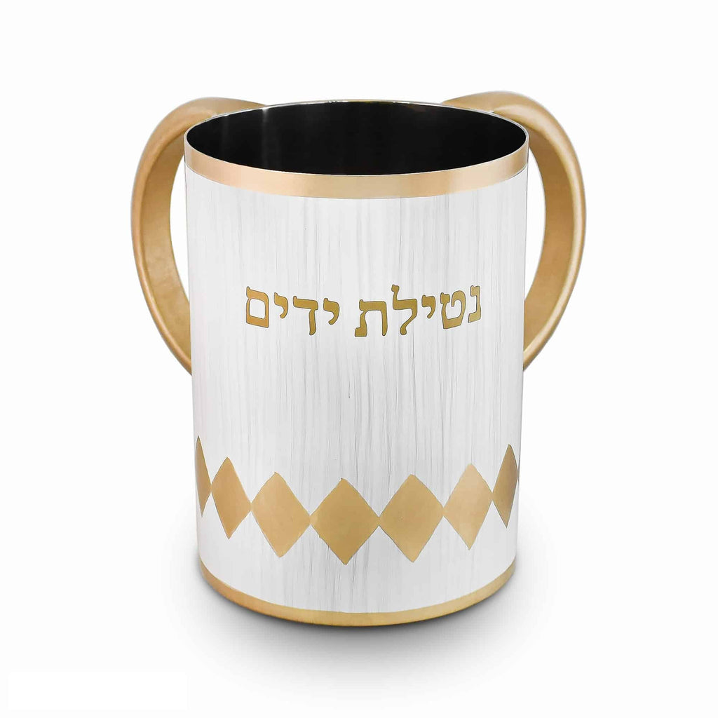 Stainless Steel Washcup-White With Gold Handles and Design (WC-X5740)