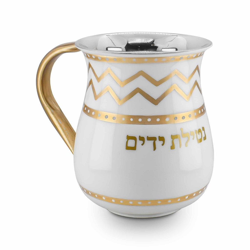 Stainless Steel Washcup-White With Gold Handles and Design-Rounded (WC-X5740A)